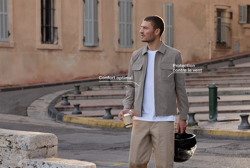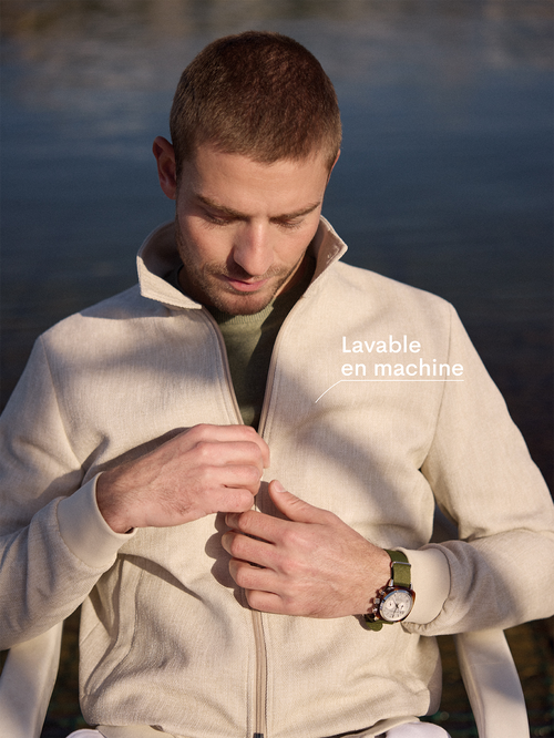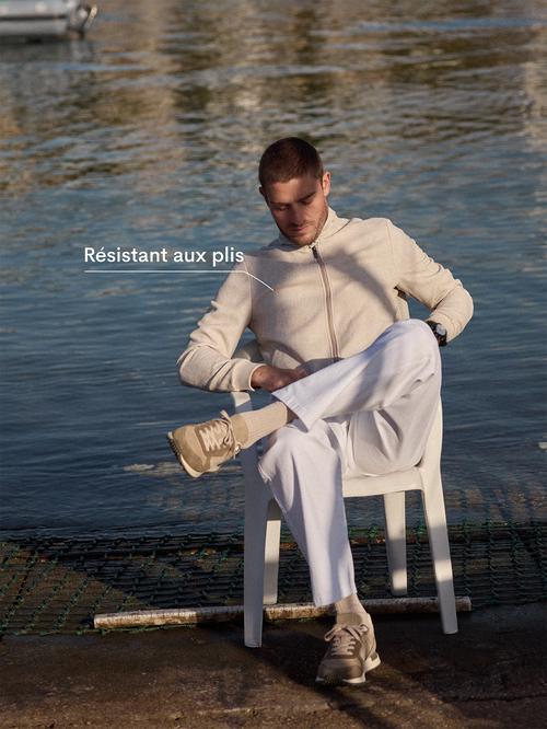 Avec des tissus qui ne se froissent pas comme celui de ce blouson beige et des couleurs qui s’associent naturellement, chaque pièce de la Ligne Active libère du temps pour ce qui compte vraiment.