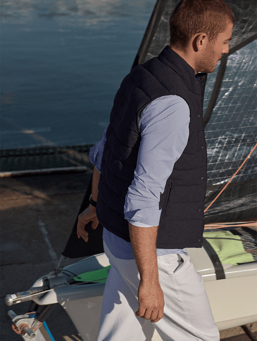 Virgil Aubriot, visage de notre collection Ligne Active depuis deux ans, incarne cet esprit : entre mannequinat et vie en mer, toujours en mouvement.