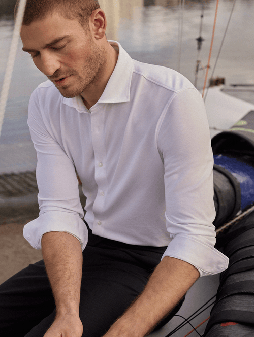 Des vêtements qui s'adaptent à votre rythme, combinant élégance et praticité. Avec des matières techniques, faciles à enfiler, et sans repassage, nous redéfinissons la simplicité.